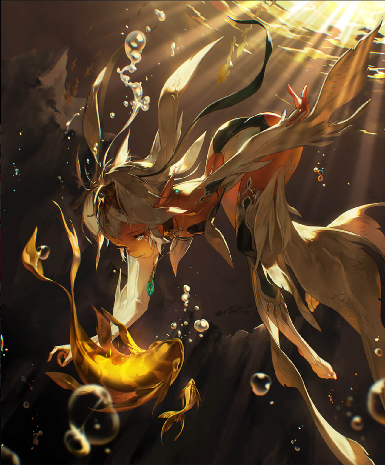她原本是被誉为海之女神的美丽精灵,由于长期独自守著神殿,已渐渐失去原本的面貌。从前闪著灵气的双眼染上了杀气,温和的微笑也变成了淡漠的冷笑。如今人们将她称为海之魔女,唯恐避之不及。